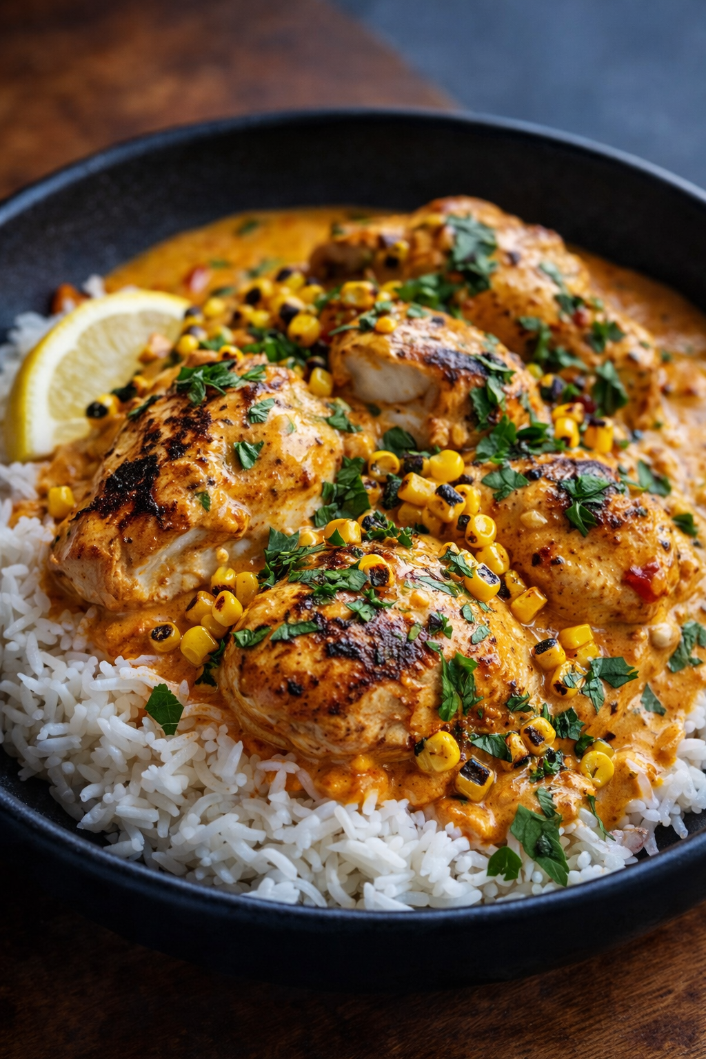 Peri Peri Chicken , Rice & Charred Corn